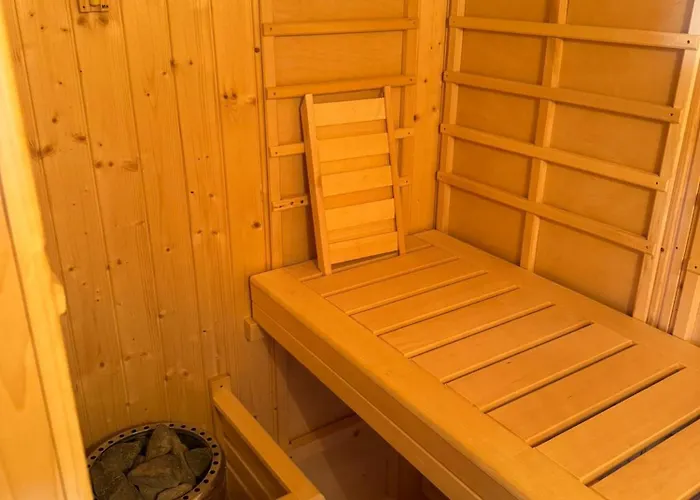 A 2 hálószobás Ferienhaus Fuer Max6Gaeste 2Kids 4Erwn Haller szaunával várja a pihenni vágyó vendégeket.